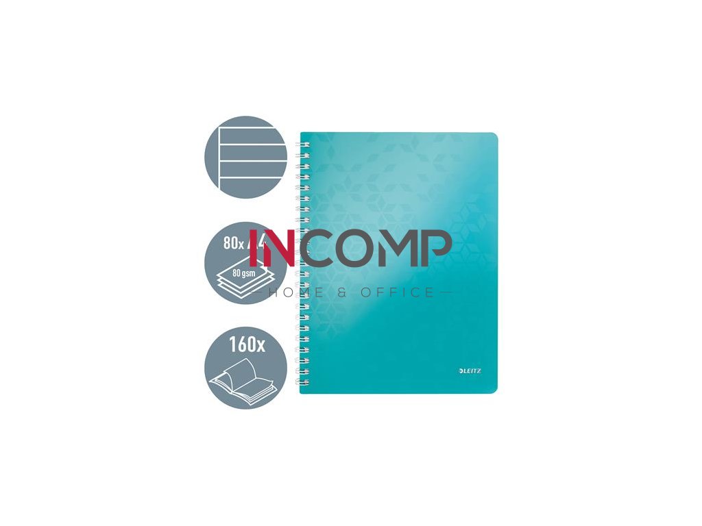 Špiralový zošit, A4 linajkový, 80 listov, LEITZ "Wow", ladovo modrý