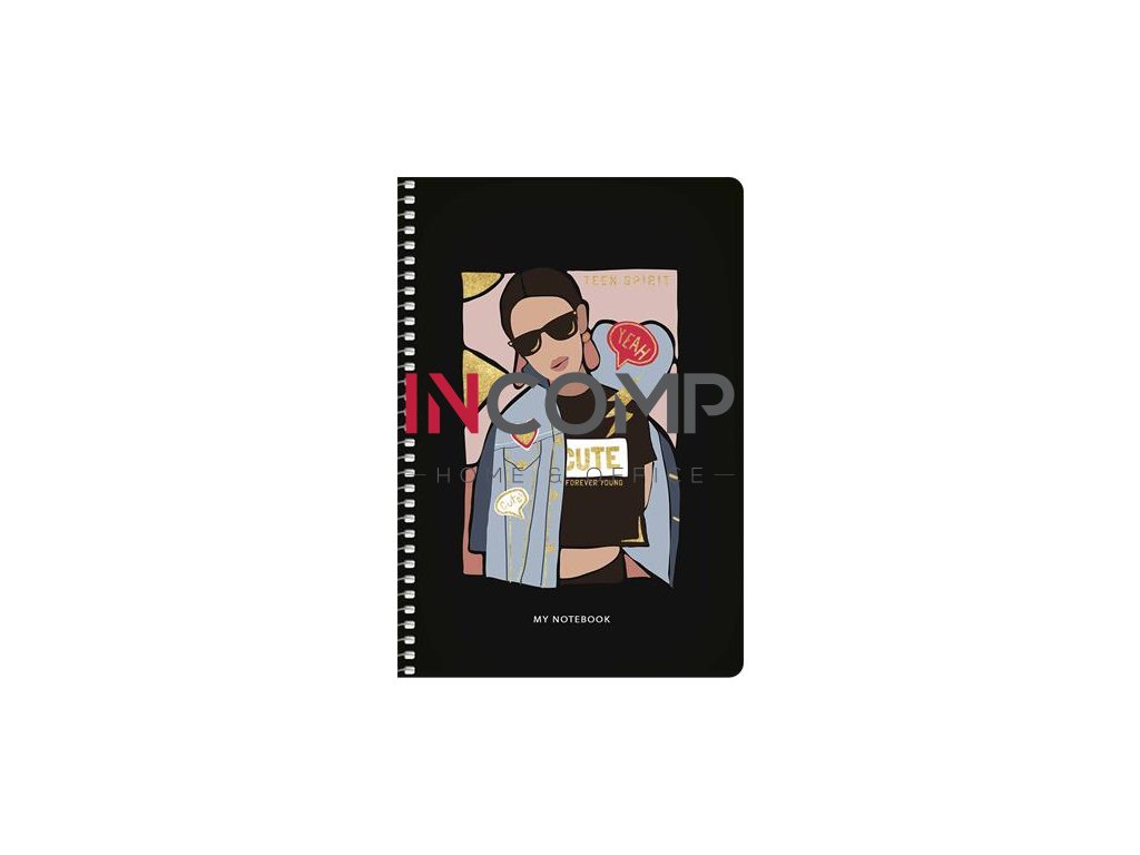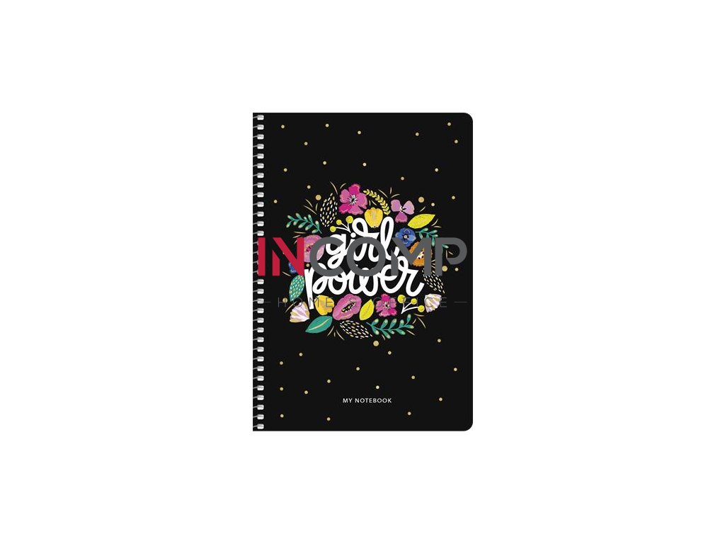 Špirálový zošit, A5, 80 listov, tvrdá obálka, SHKOLYARYK „Girl power”, mix
