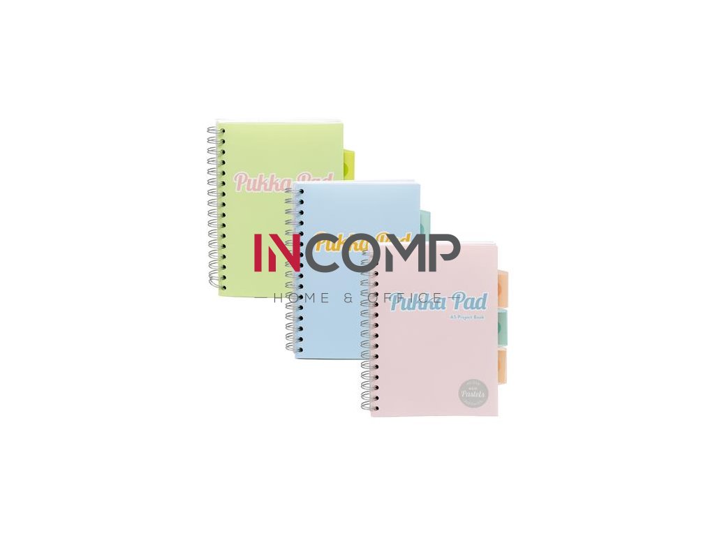 Špirálový zošit, A5, linajkový, 100 listov, PUKKA PAD "Pastel project book", mix farieb