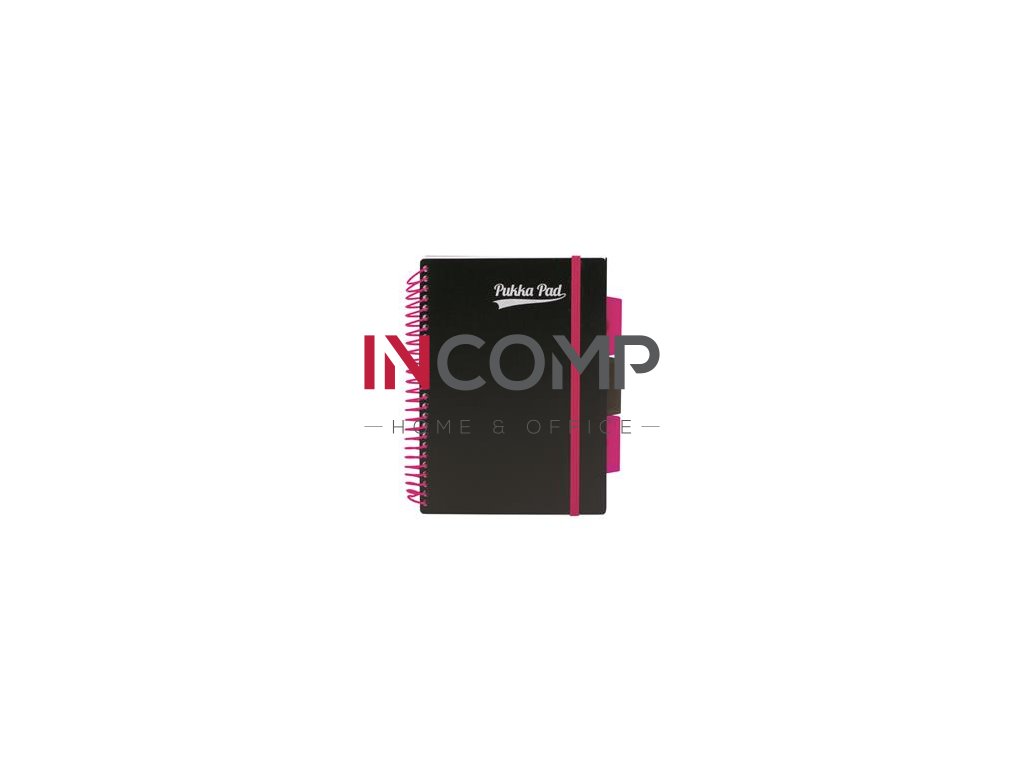 Špirálový zošit, A5, linajkový, 100 strán, PUKKA PAD, "Neon black project book"