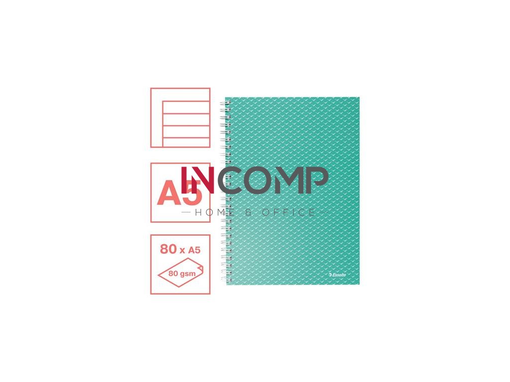 Špirálový zošit, A5, linajkový, 80 listov, ESSELTE "Colour`Breeze", zelený