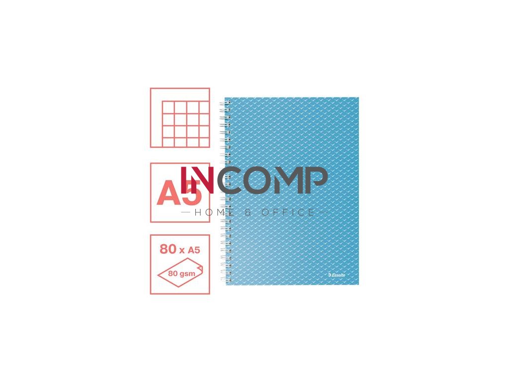 špirálový zošit, A5, štvorčekový, 80 listov, ESSELTE "Colour`Breeze", modrá