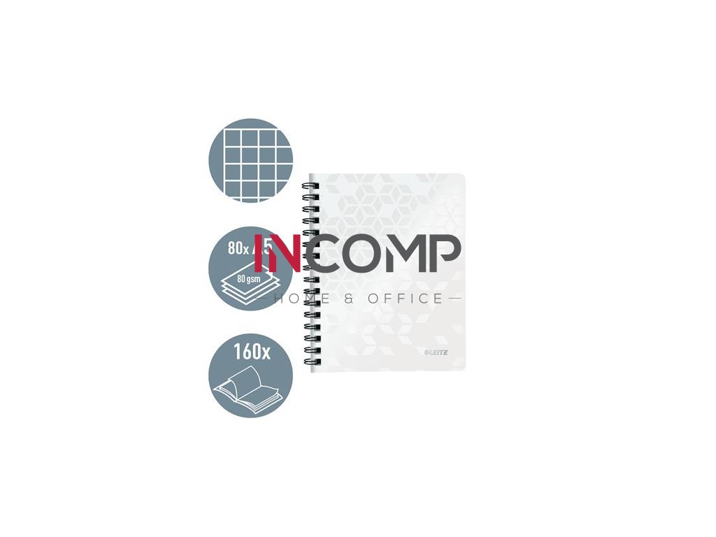 Špirálový zošit, A5, štvorčekový, 80 listov, LEITZ "Wow", biela