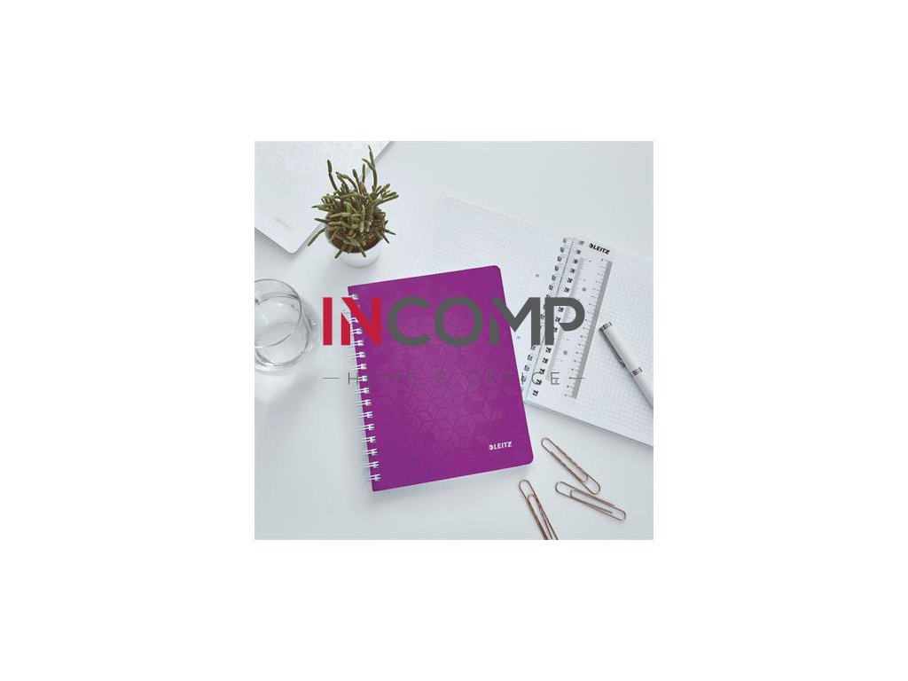 Špirálový zošit, A5, štvorčekový, 80 listov, LEITZ "Wow", fialový