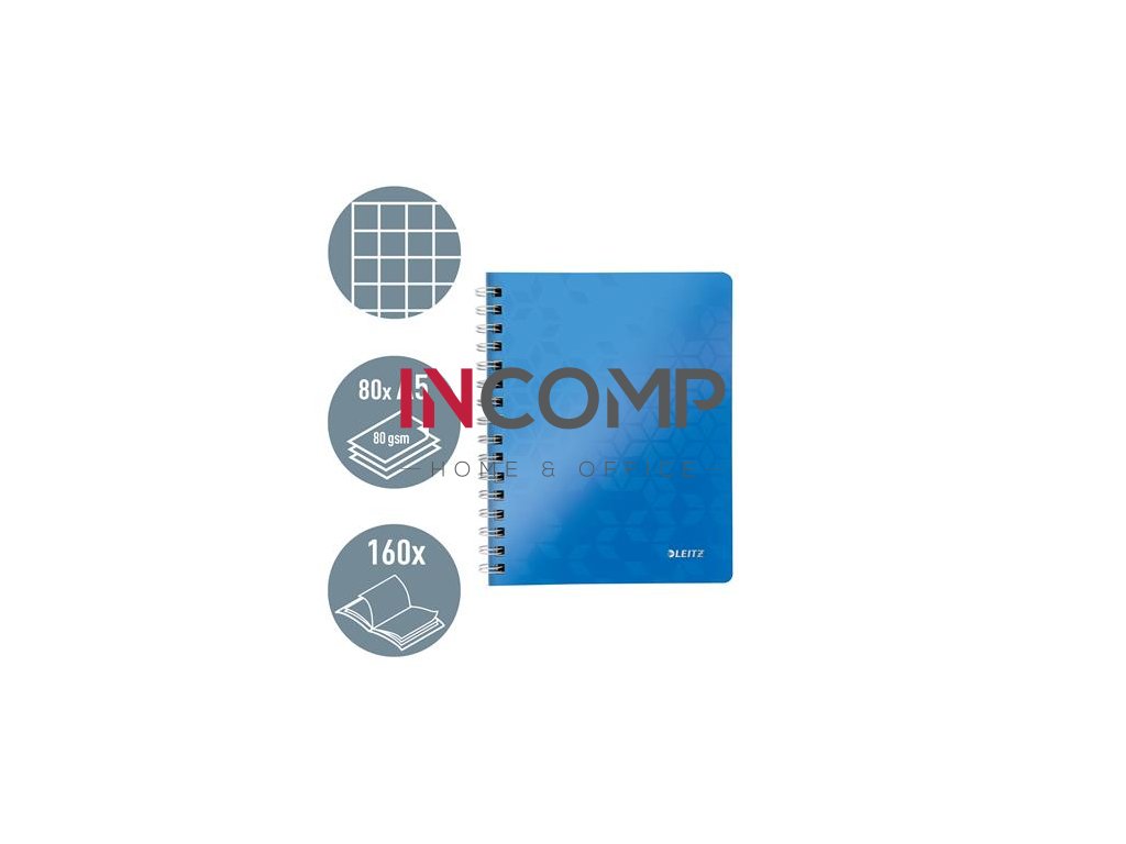 Špirálový zošit, A5, štvorčekový, 80 listov, LEITZ "Wow", modrý