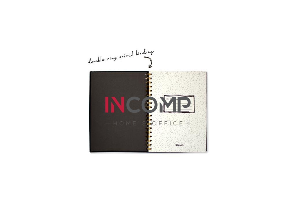 - vysokokvalitný zošit s tvrdou väzbou -dvojitá špirála v zlatej farbe -papier s gramážou 80 g/m² -160 strán -rozmery: 250x187 mm