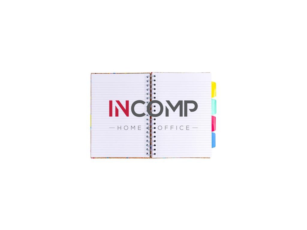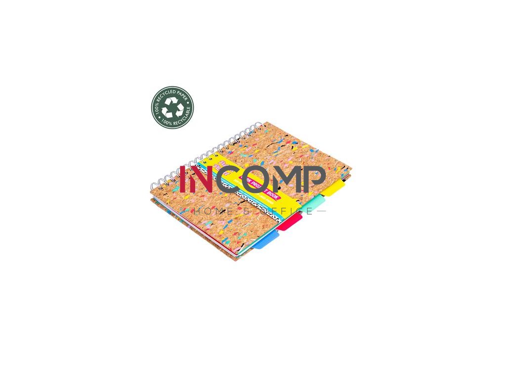 - so 100 listami vysokokvalitného papiera FSC - so 4 prenosnými oddeľovacími kartami v zábavných farbách - špirála je vyrobená z recyklovaného materiálu