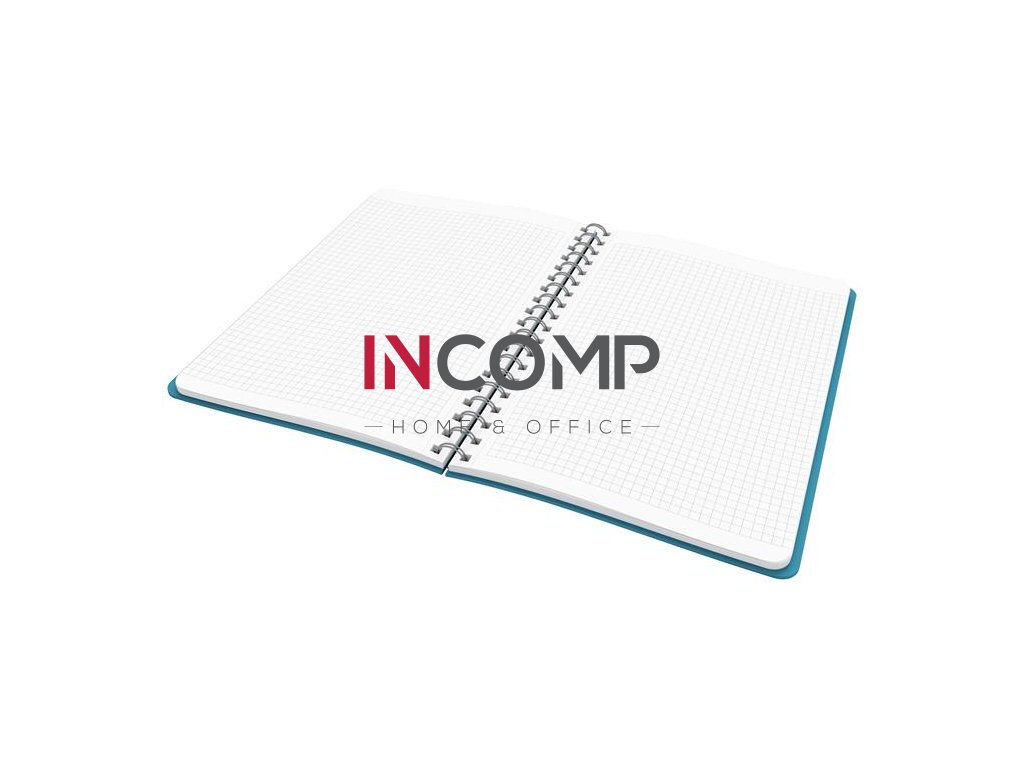 Štvorčekový špirálový zošit so záložkou a praktickým úložným vreckom na poslednej strane