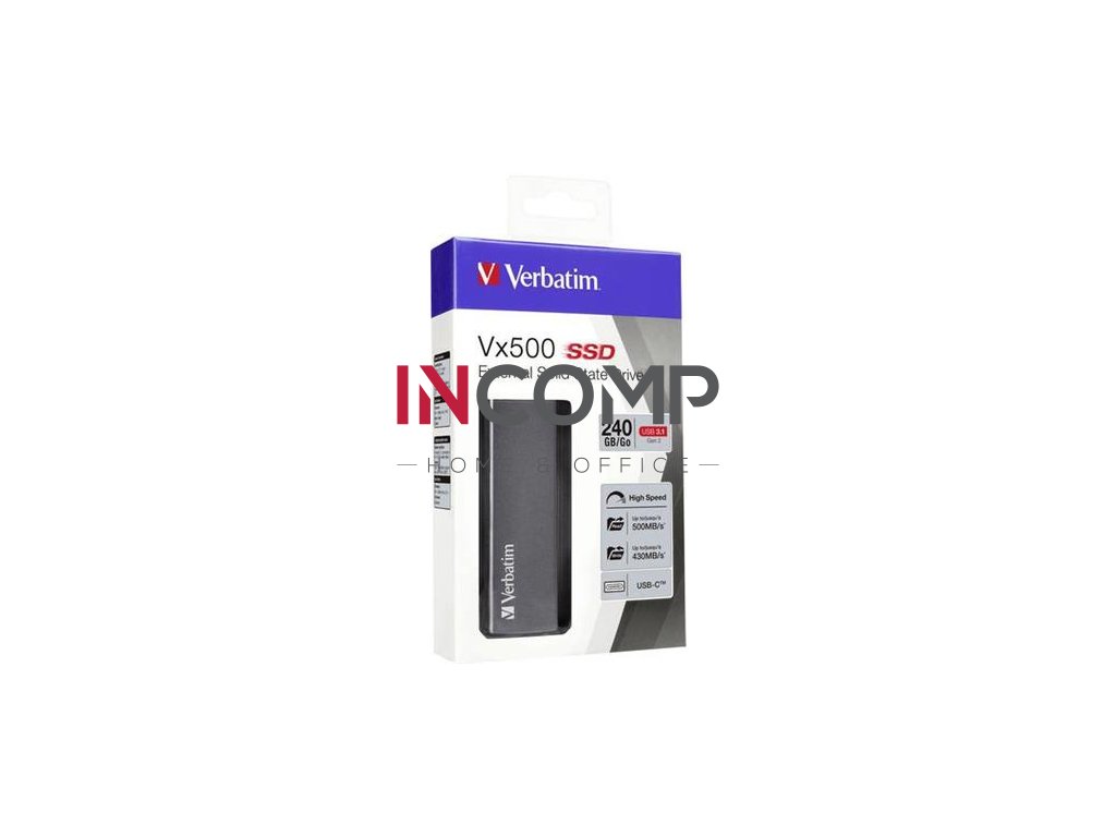 SSD (externá pamäť) 240 GB, USB 3.2 Gen2, VERBATIM "Vx500", sivá