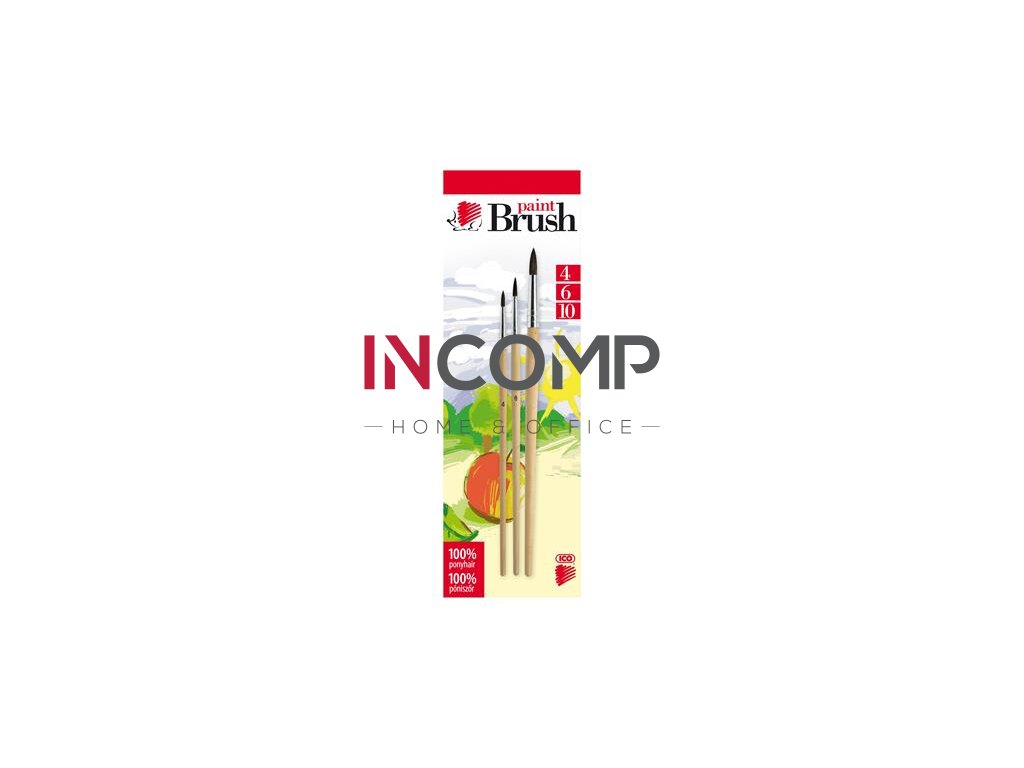 Štetec, sada, okrúhly, no. 4-6-10, drevený, ICO "Ježko", prírodný