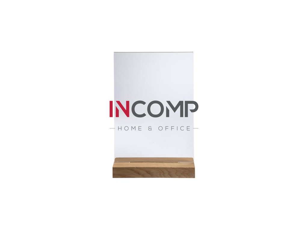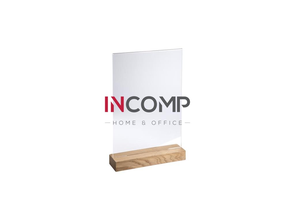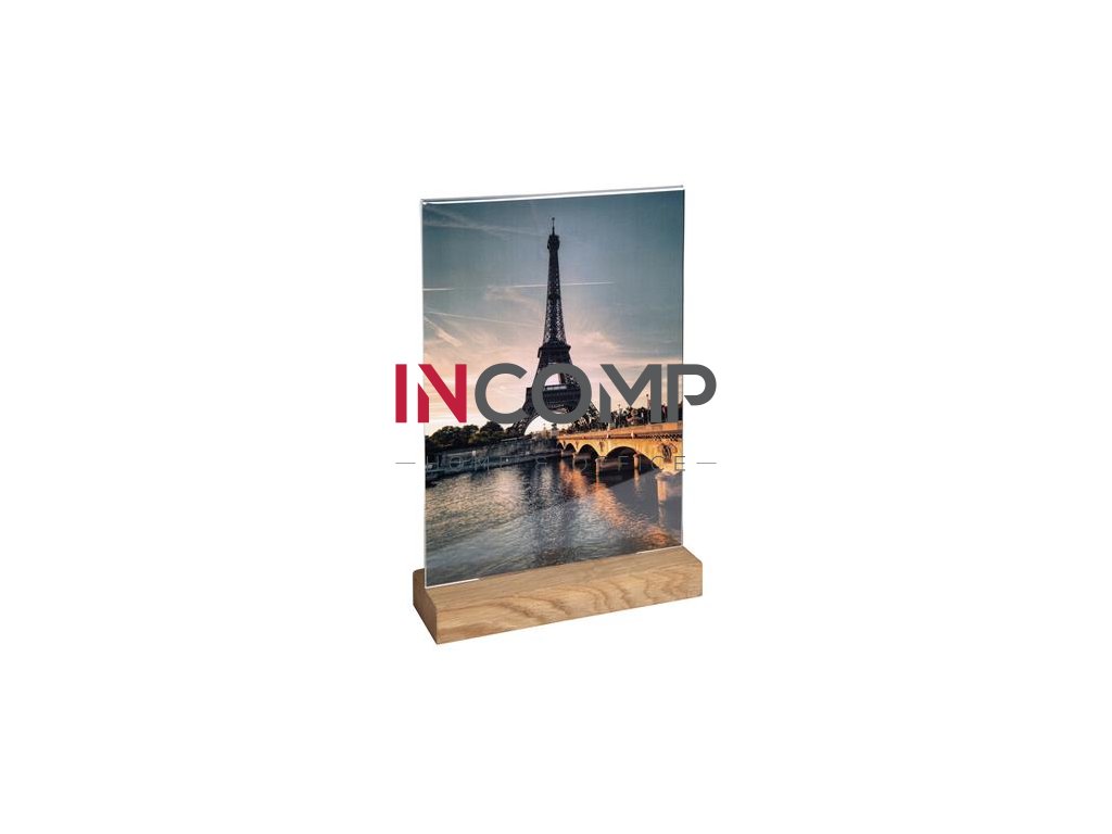 Ideálny na vystavenie fotografií, informácií, jedálnych lístkov či ponúk na stole. -vyrobený z kvalitného akrylu zvislá (stojatá) orientácia -priehľadný -podstavec z dreva -obojstranný -rozmery: 210 x 50 x 330 mm -odolný voči UV žiareniu