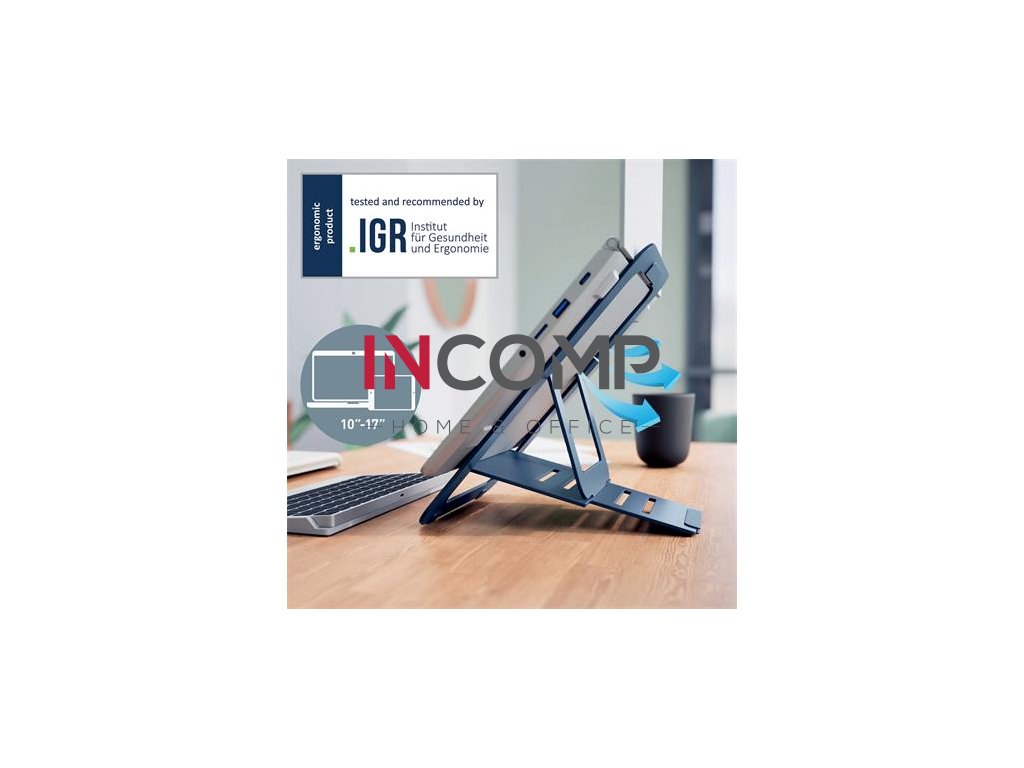 Zdvíha notebook a jeho displej, a tak zvyšuje pohodlie pri práci a pomáha zlepšiť držanie tela pri sedení alebo státí. Zlepšuje tak zdravie a podporuje aktívny spôsob práce