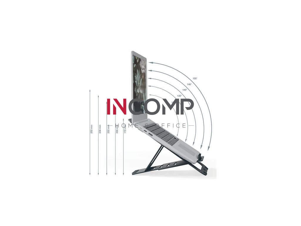 Vhodné pre notebooky a tablety vo veľkosti 10–17" (s MacBookmi, ktoré sa otvárajú do uhla max. 135 stupňov, možno používať pri nastavení výšky 172 a 200 mm)