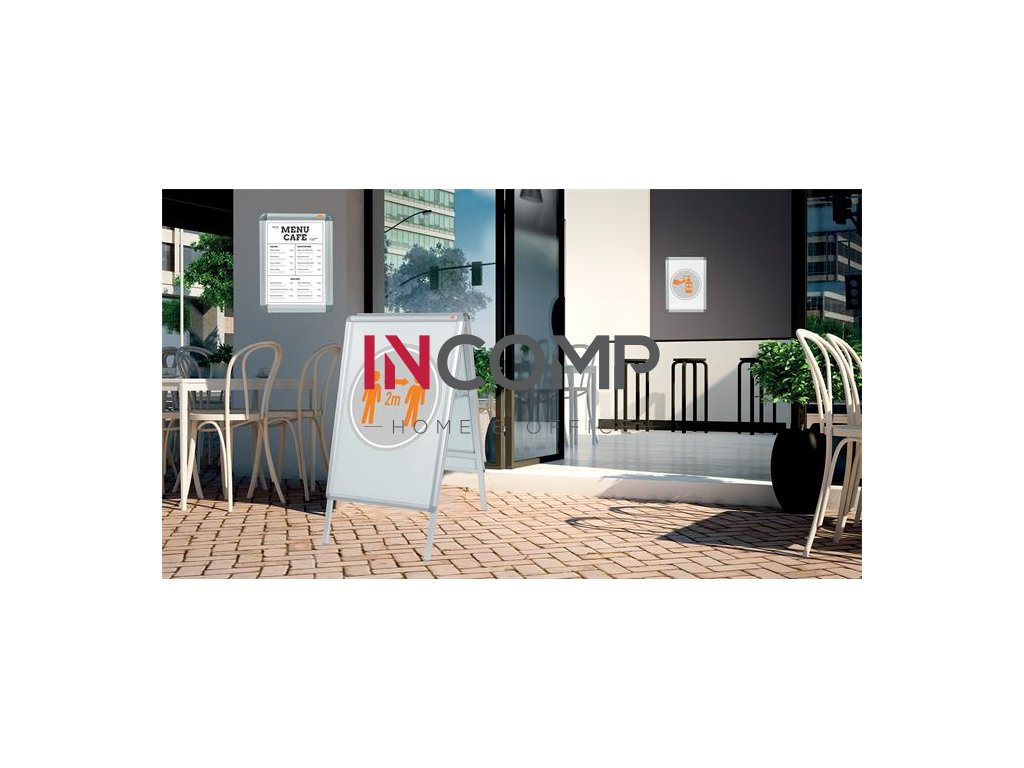 Stojan na plagáty typu A je vodotesný vďaka PVC fólii s inteligentným hliníkovým rámom, ktorý umožňuje jednoduchú výmenu plagátov.