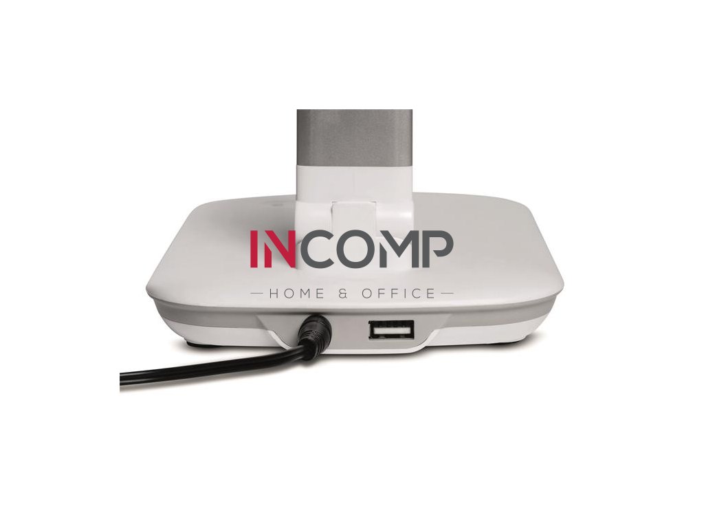 Lampa s integrovaným USB typu A na nabíjanie smartfónu a 5-stupňovým stmievačom s dotykovou funkciou na základni svietidla. Energeticky úsporná trieda „A“ (spektrá A++ - E) s 24 LED žiarovkami bez možnosti ich výmeny so životnosťou 20 000 hodín s teplým bielym svetlom 3 000 °K. Svietivosť 2 060 lx pri vzdialenosti 35 cm od stola, svetelný tok 410 lúmenov, extrémne nízka spotreba energie cca 8 kWh / 1 000 h. Sklopná a otočná svetelná hlavica 26 × 5 cm, stabilný podstavec 18 × 13 cm so závažím a podložkou proti poškodeniu dosky stola. Rameno z eloxovaného hliníka, dĺžka 36,5 cm, výška normálnej pracovnej pozície 41 cm, dĺžka kábla 1,8 m.