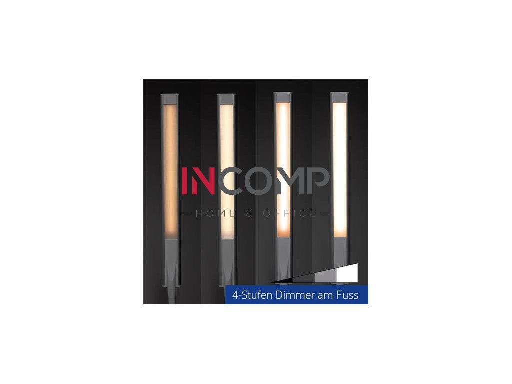 Energeticky úsporná stolová lampa vyrobená najnovšou technológiou LED. Ovládanie jasu, ktoré možno prispôsobiť aktivite a individuálnym potrebám. Čistý, decentný dizajn, harmonicky zapadá do priestoru. - svetelný zdroj: vstavaný LED panel, LED žiarovky sú vymeniteľné v tele svietidla - intenzita svetla: 726 lumenov, nastaviteľná v 4 úrovniach - osvetlenie: 1120 luxov vo vzdialenosti 35 cm - so stmievateľným dotykovým spínačom pre zníženie odtieňov - teplota farby: 3000 Kelvinov, teplá biela - priemerná životnosť LED: 50 000 hodín - priemerná spotreba energie: 6 kWh/1000 h - materiál ramena: kov, pogumovaný - materiál hlavy: hliník - dĺžka ramena: 38 cm - dĺžka hlavy: 32 cm - výška: 37,3 cm - hlava a rameno sa dajú naklápať a otáčať - vážený plastový podstavec, rozmer 16,7 cm x 12 cm - dotykový vypínač na podstavci - funguje zo siete 220/240 V - farba: biela - záruka: 2 roky - hodnotenie energetickej účinnosti: E ??(na stupnici A-G)