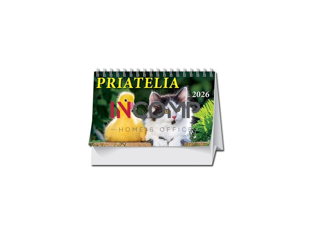 Týždenný stolový kalendár Priatelia prináša krásne a milé fotografie zvieracích priateľov: psíkov, mačiek, zajačikov, vtáčikov a ďalších obľúbených domácich zvierat. Každý týždeň Vám spestrí nový zvierací kamarát, ktorý vyčarí úsmev na tvári a spríjemní pracovný či domáci deň. Ideálny darček pre deti ale aj všetkých milovníkov zvierat.