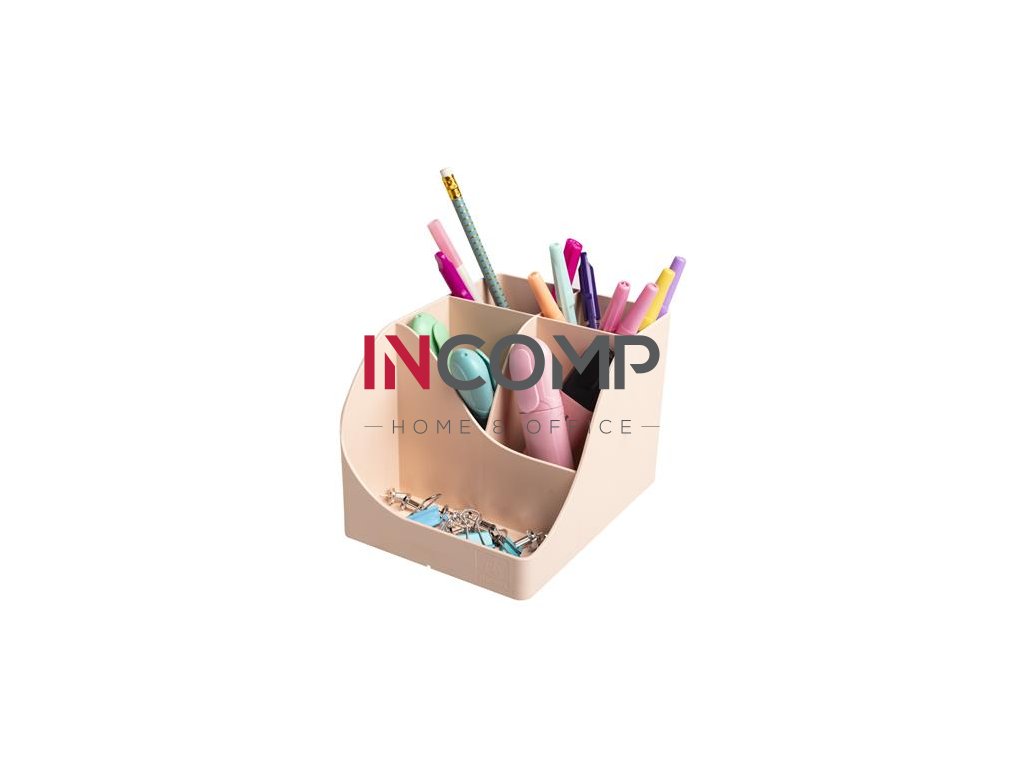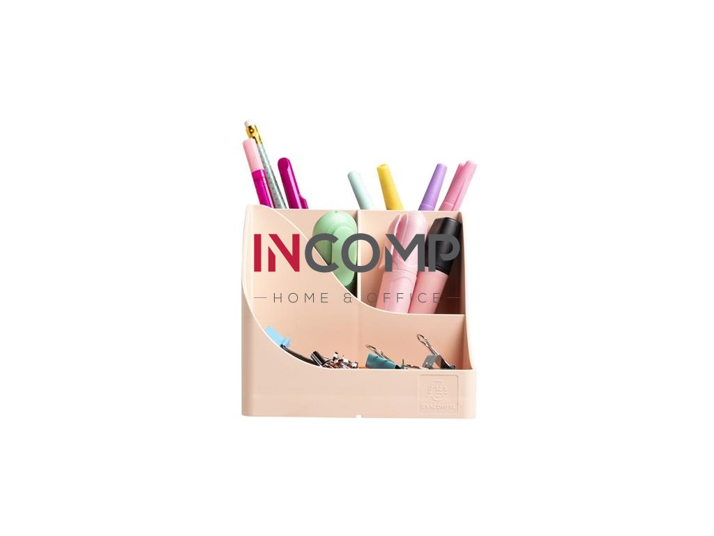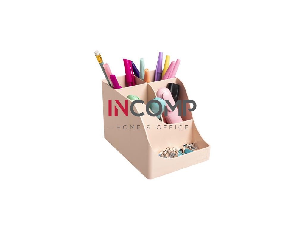 - 4 priehradky na písacie potreby a nožnice, 1 priehradka na menšie doplnky a mobil