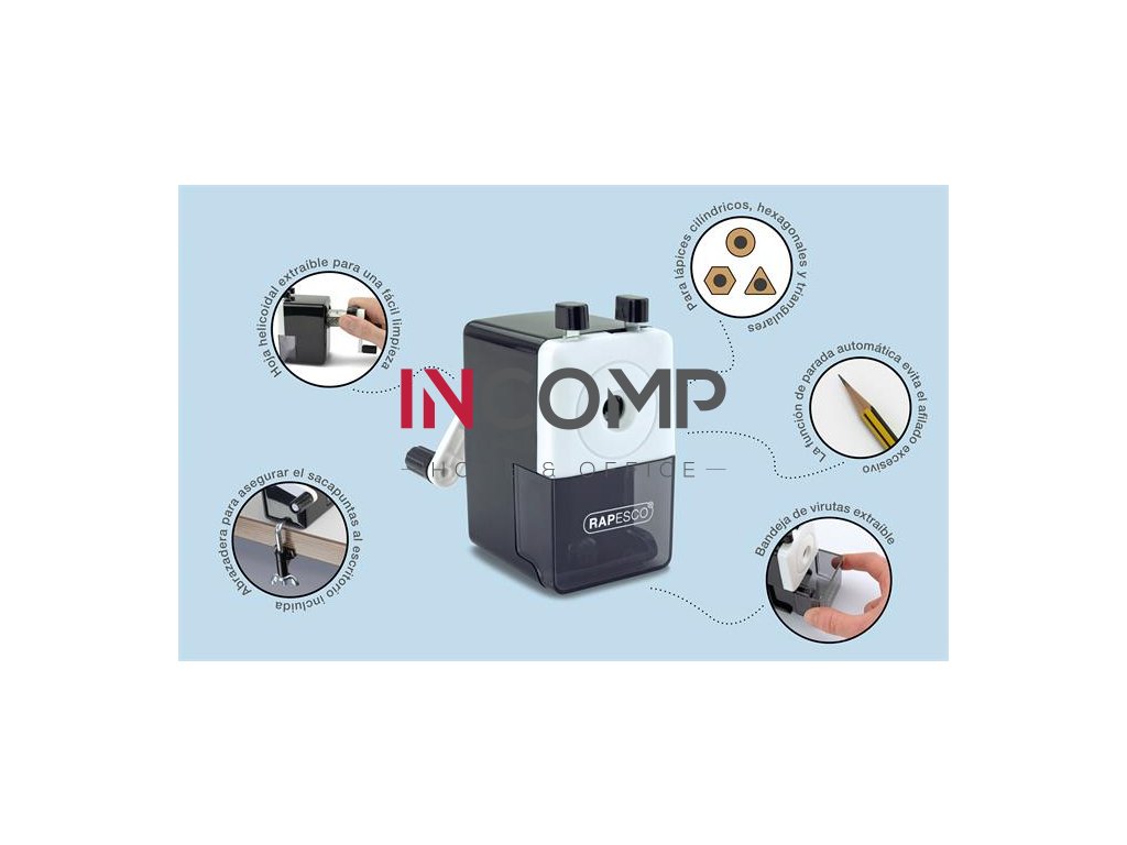 Stolné strúhadlo na ceruzky Rapesco 64 je štýlové, vysoko funkčné strúhadlo s mnohými funkciami