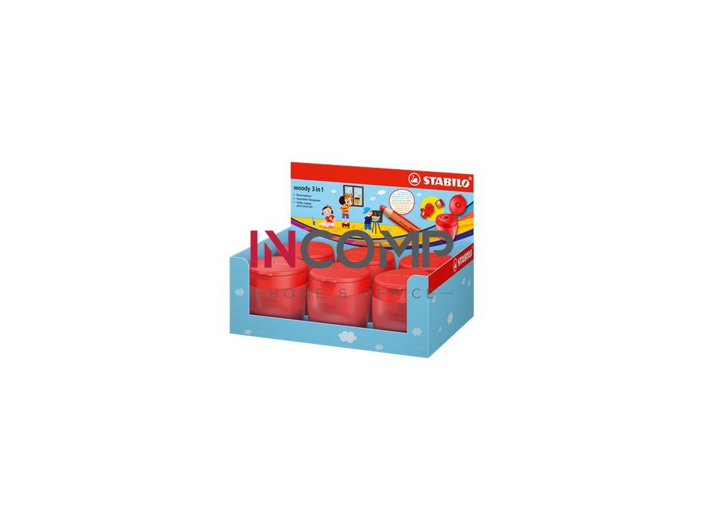 Strúhadlo, displej, jednodierové, so zásobníkom, STABILO "Woody 3 in 1", červená