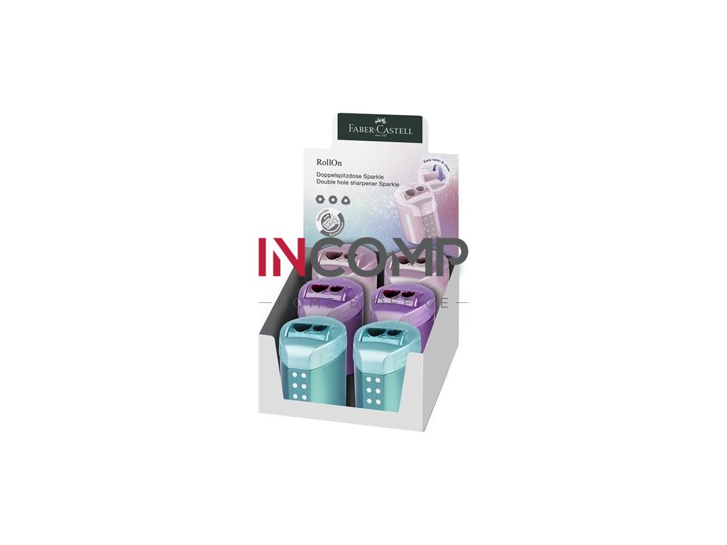 Strúhadlo, dvojdierové, so zásobníkom, displej, FABER-CASTELL "RollOn Sparkle", metalické farby