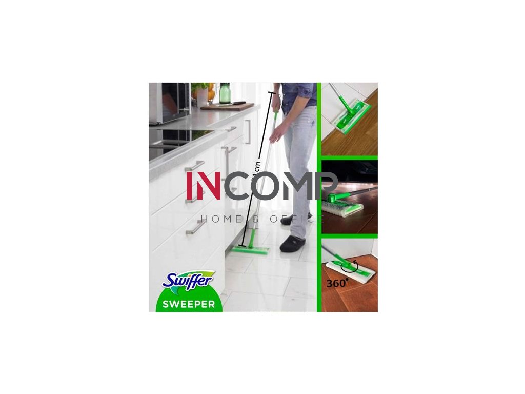 Zachytáva a uzatvára prach a chlpy. 1 ks metla + 8 suchých podlahových utierok + 3 mokré podlahové utierky na náhradu. SWIFFER Sweeper s pevnou utierkou a 360° naklonenou hlavou umožňuje ľahký prístup aj pod postele, pohovky alebo skrine.Vynikajúco sa hodí na zber srsti domácich miláčikov.