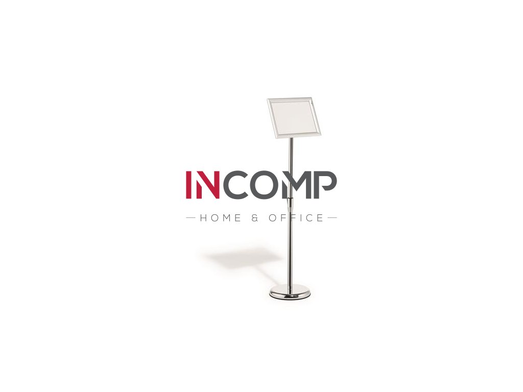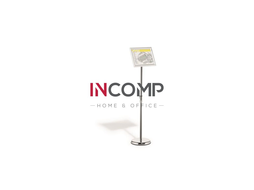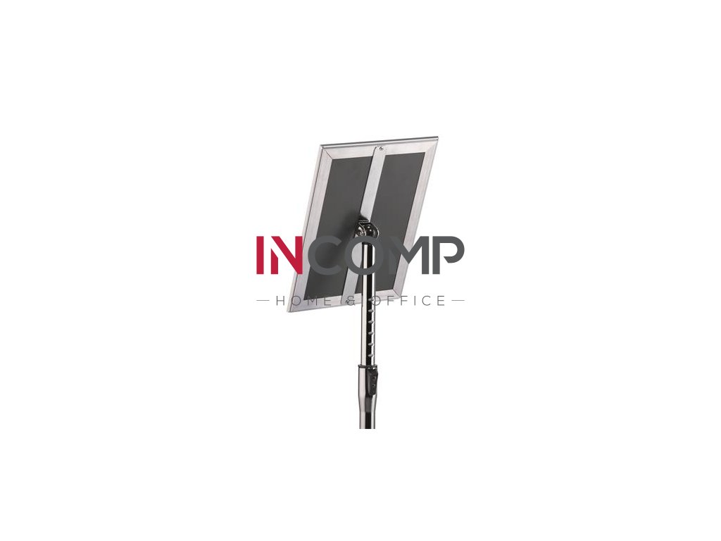 Rýchlo zostaviteľný informačný stojan so stabilným hliníkovým rámom DIN A4, v striebornej farbe - pre väčšiu stabilitu možno základňu voliteľne vyplniť pieskom. Piesková plnička nie je súčasťou balenia -okrúhly podstavec s gumeným krúžkom, ktorý zabraňuje poškriabaniu podlahy -postupne nastaviteľná teleskopická tyč, výškovo nastaviteľná od 770 mm do 1205 mm. Maximálna výška je vo formáte na výšku. - rám je možné jednoducho previesť na formát na výšku alebo na šírku. -nastaviteľný uhol čítania vďaka guľovému kĺbu. -nereflexná fólia odolná voči UV žiareniu -odolný proti rozbitiu, polystyrénový zadný panel -s profilom na pokos -ideálny v pohostinstve, maloobchode, múzeách, výstavách, veľtrhoch, recepciách, čakárňach a konferenčných miestnostiach atď.