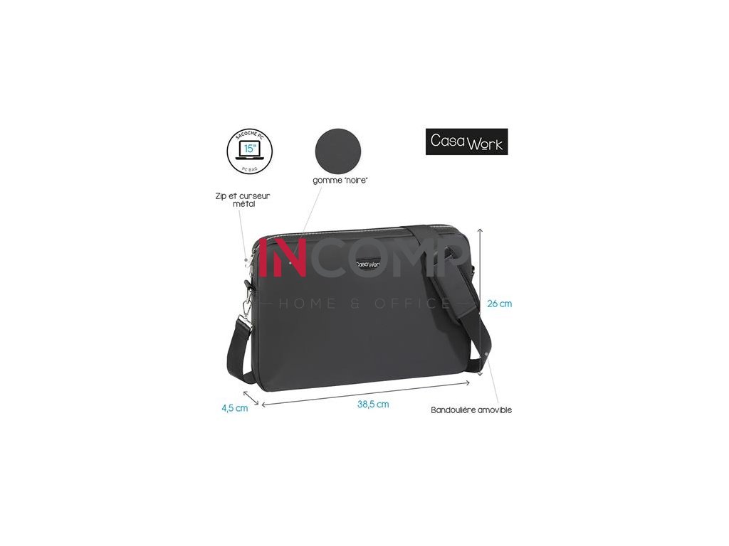 Máte dosť už klasických, nudných tašiek na notebook? Len kľud! Viquel pre Vás vytvoril moderný produktový rad CASAWORK! - nastaviteľný, odnímateľný ramenný popruh - pogumovaný PU materiál - strieborný zips - ručná rukoväť - čierna, mäkká neoprénová podšívka pre maximálnu ochranu - rozmer: 38,5x26x4,5 cm - vhodné na prepravu maximálne 15" notebooku