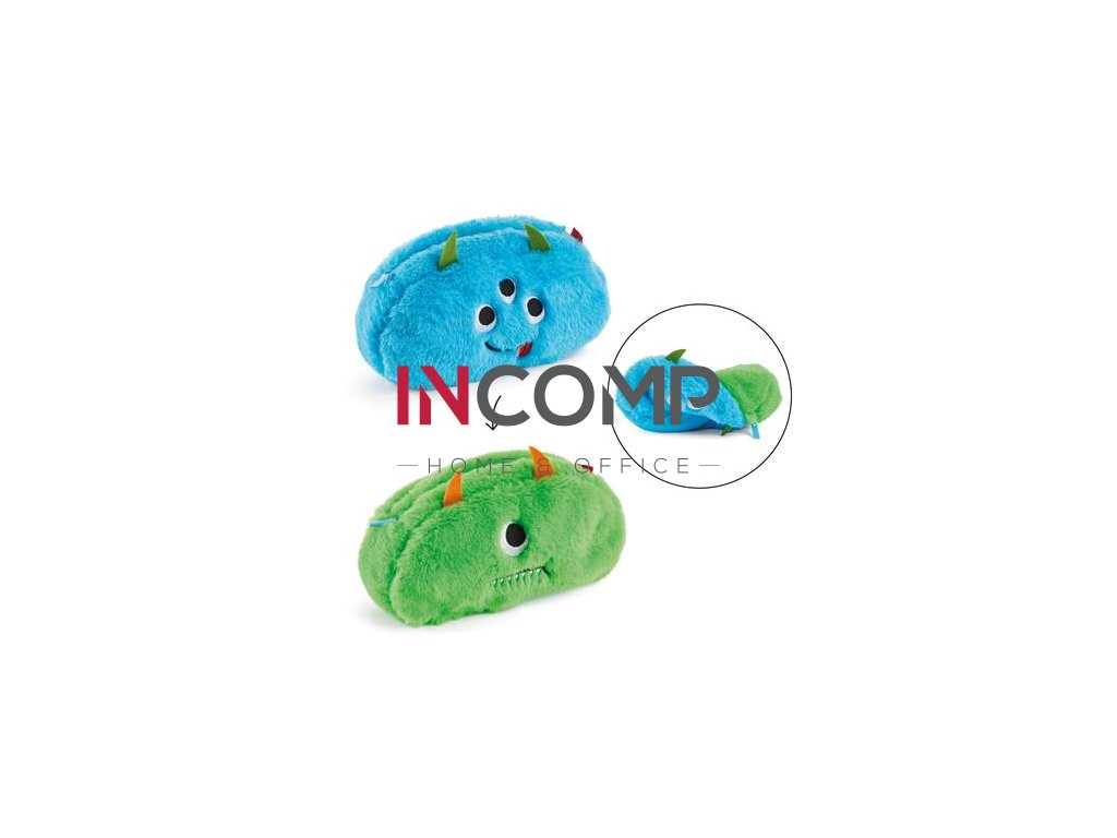 Chlpatá taštička na doplnky "Monster", obojstranná, APLI Back2Fun: zapínanie na zips, materiál: mäkký, chlpatý polyester s vyšívanými detailmi, rozmery: 230 x 1120 x 60 mm, farba: modrá/zelená