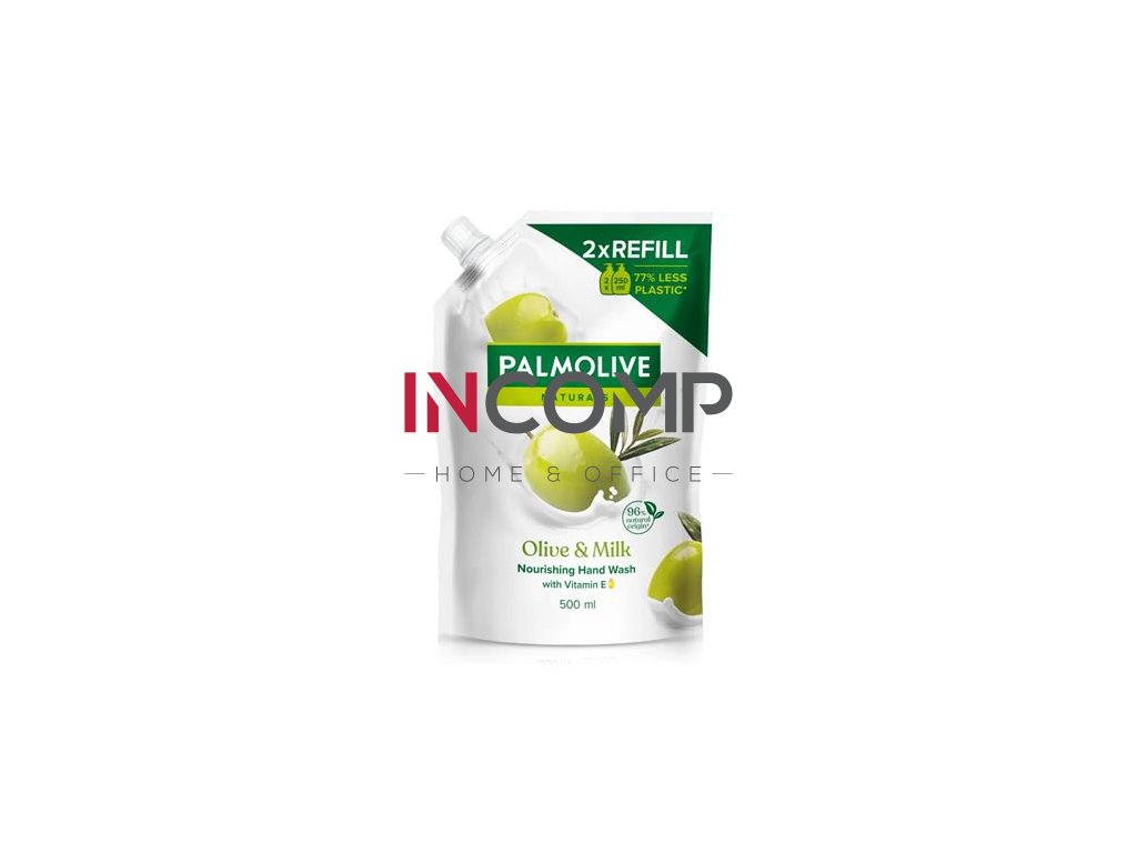 Tekuté mydlo, náhradná náplň, 0,5 l, PALMOLIVE Nourishing "Olive and milk"