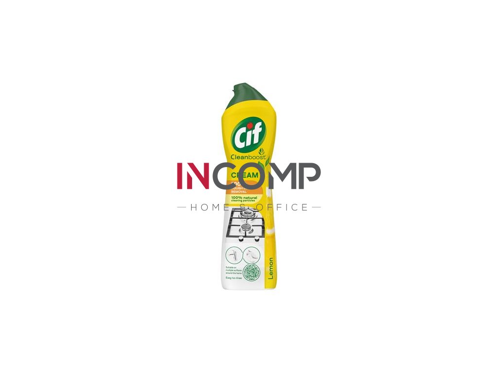 Cif Lemon tekutý prášok s mikrokryštálmi. Odstraňuje aj tie najodolnejšie nečistoty pre 100% žiarivú čistotu. Preniká aj cez najodolnejšie nečistoty, ako sú pripálené tukové škvrny a zvyšky jedla, usadeniny vodného kameňa v kúpeľni; vďaka svojej konzistencii sa ľahko oplachuje, takže si môžete rýchlo užívať dokonale žiarivú čistotu. Vďaka účinnosti mikročastíc môžete s malým úsilím obnoviť vzhľad svojich obľúbených predmetov. Môže sa používať pri veľkom upratovaní aj pri menších čisteniach. Odstraňuje 100% tých najodolnejších nečistôt* a zanecháva žiarivú čistotu - *na základe laboratórnych testov na odolných kuchynských a kúpeľňových nečistotách. - účinný čistiaci krém proti odolným nečistotám - účinný na plastových, keramických a sklo-keramických povrchoch - 100% odstránenie nečistôt - s mikrokryštálmi - čistota s minimálnym úsilím - príjemná citrónová vôňa - 100% žiarivosť - objem: 0,5
