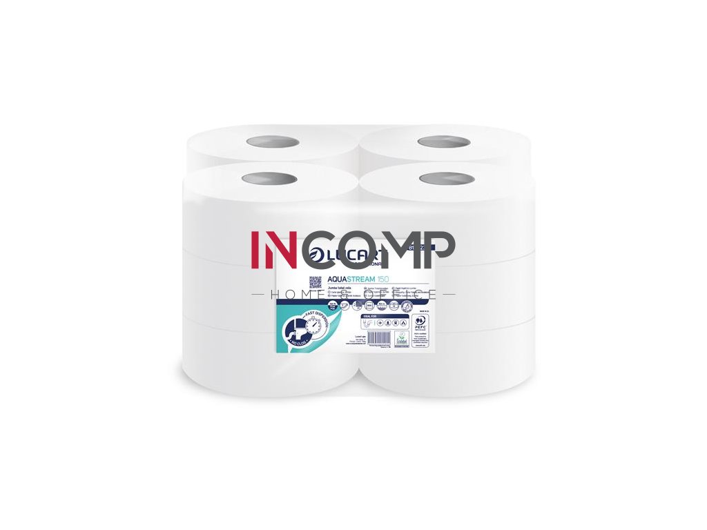 Toaletný papier, 2-vrstvový, maxi, 150 m, 19 cm priemer, LUCART "Aquastream 150", biela