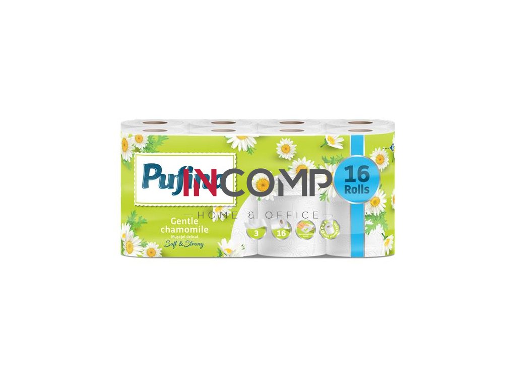 Toaletný papier, 3-vrstvový, malý kotúč, 16 kotúčov, PUFINA "Chamomile", s vôňou harmančeka