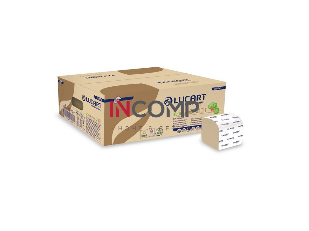 Toaletný papier, skladaný, 2 vrstvy, 210 listov/bal., LUCART "EcoNatural", havana hnedá