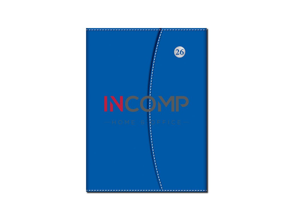 Týždenný stĺpcový diár z ekologickej kože doplnený ozdobným prešitím, strieborná razba roka, magnetické zatváranie.