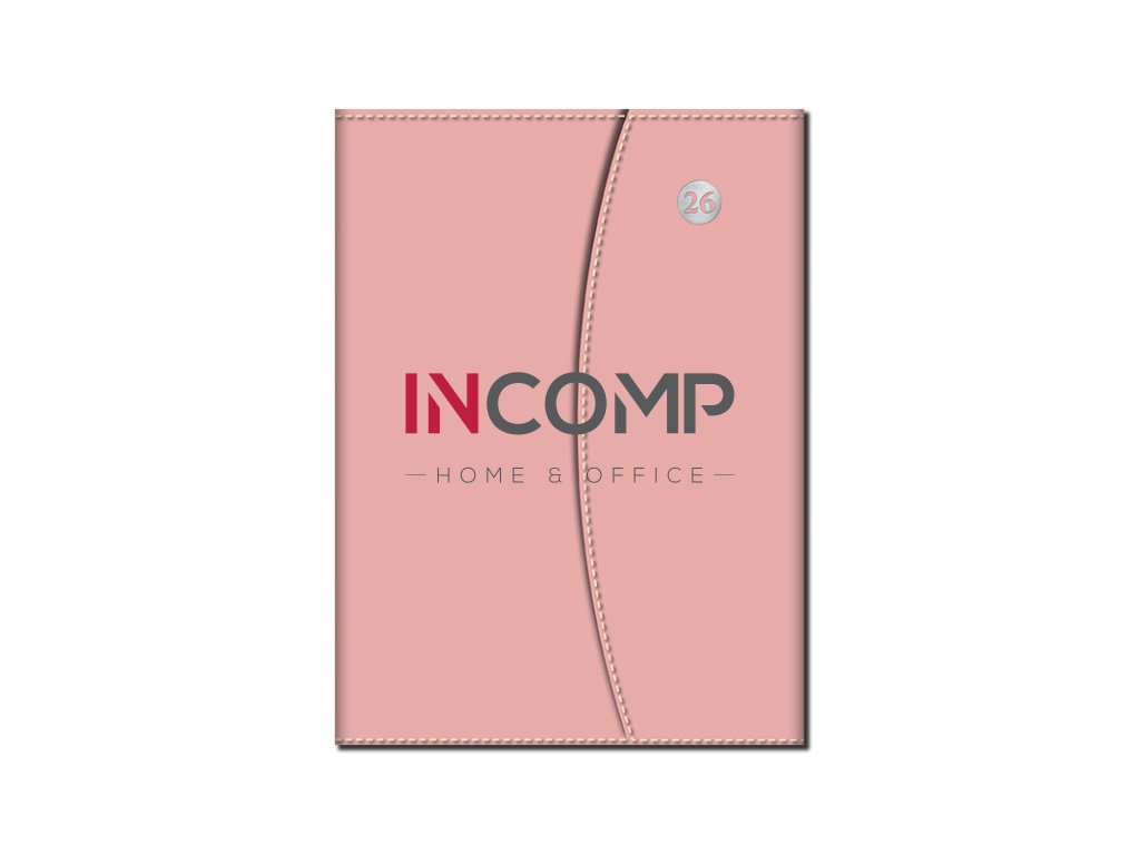 Týždenný stĺpcový diár z ekologickej kože doplnený ozdobným prešitím, strieborná razba roka, magnetické zatváranie.