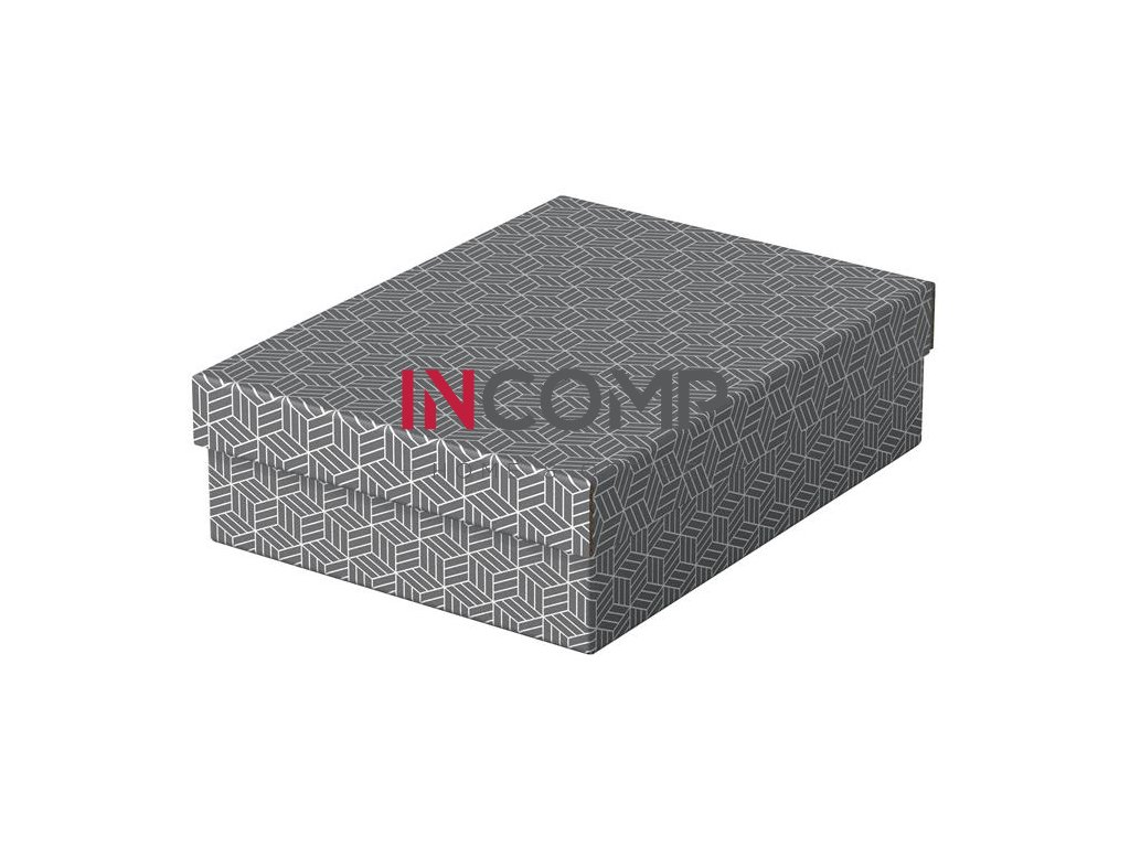 Súprava troch stredných lepenkových úložných boxov s moderným a štýlovým geometrickým dizajnom.