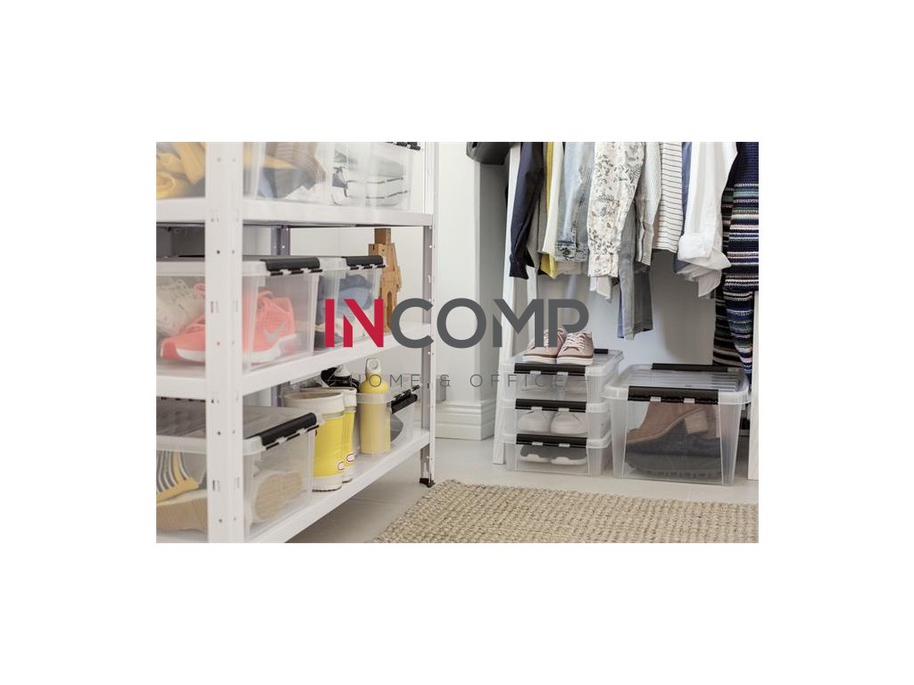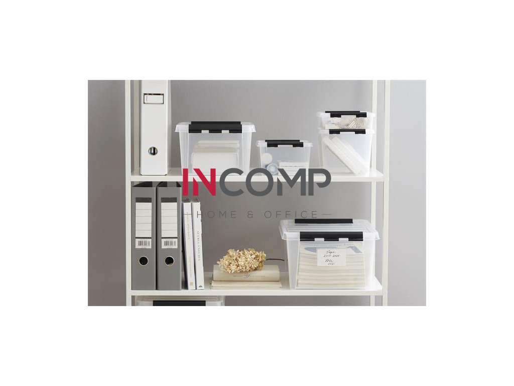 Úložný box, plastový, 14 l, čierne úchytky, SMARTSTORE "Classic 15", priehľadný