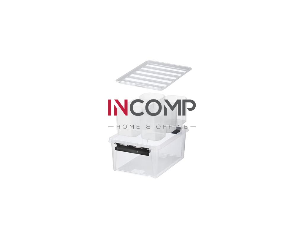 Úložný box, plastový, čierne úchytky, 6 priehradiek, SMARTSTORE "Classic 15", priehľadný