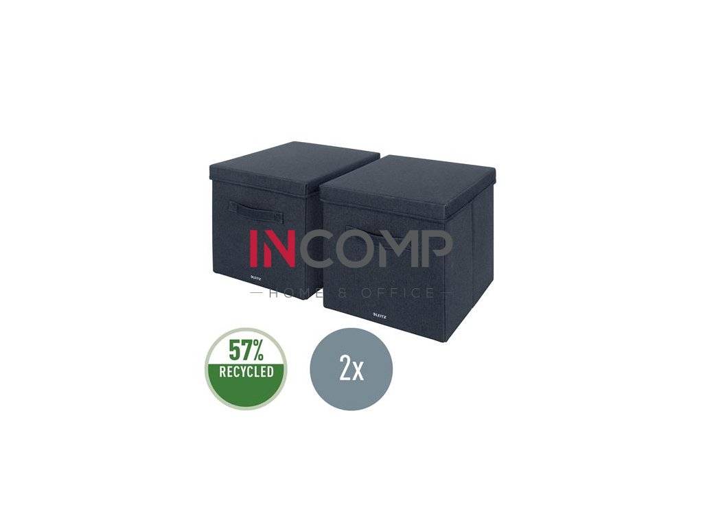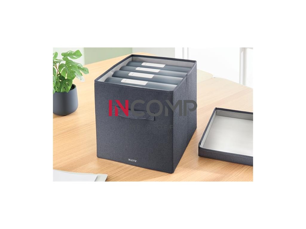 Úložný box, textilný, rozmer L, LEITZ "Fabric", zamatová sivá