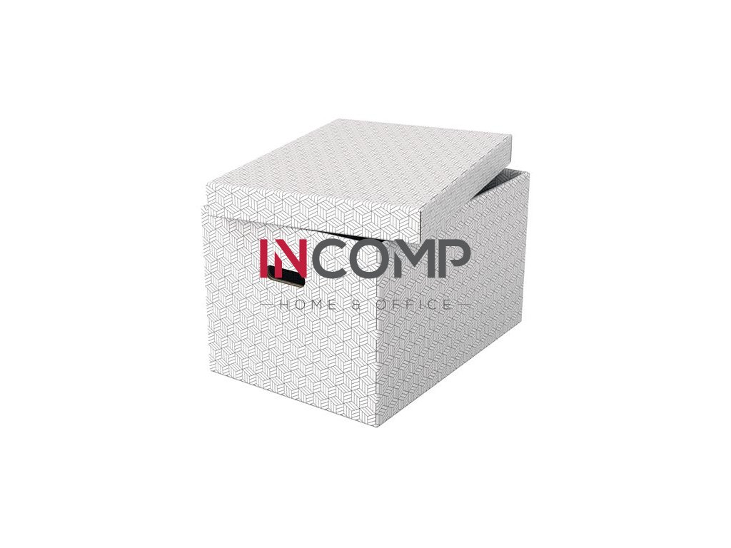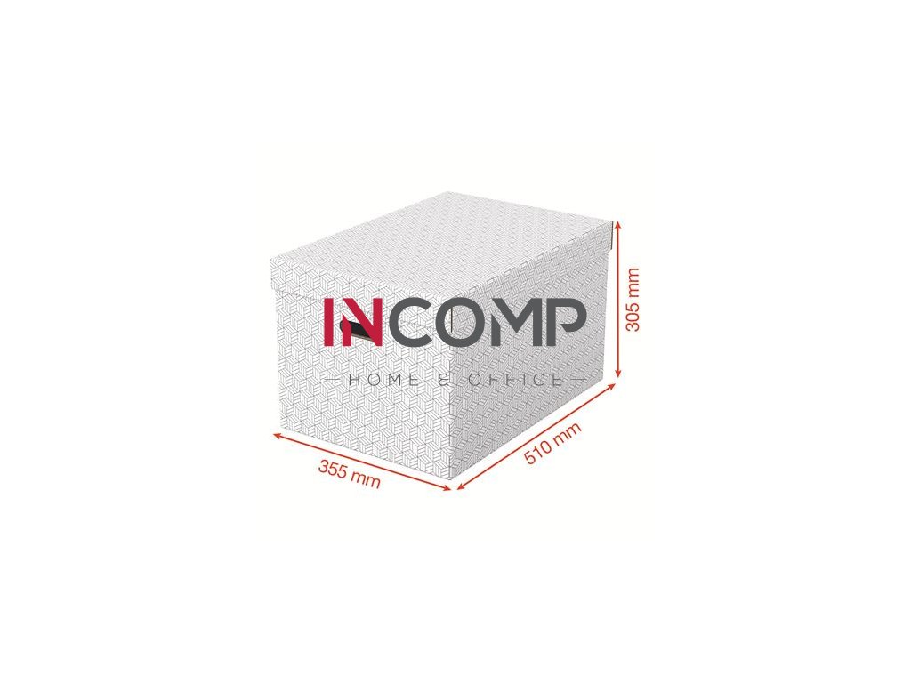 Súprava troch veľkých lepenkových úložných boxov s moderným a štýlovým geometrickým dizajnom.