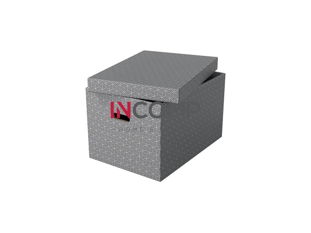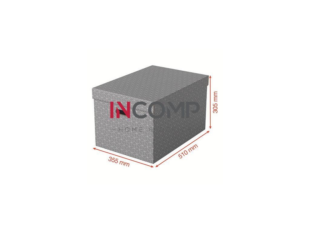 Súprava troch veľkých lepenkových úložných boxov s moderným a štýlovým geometrickým dizajnom.