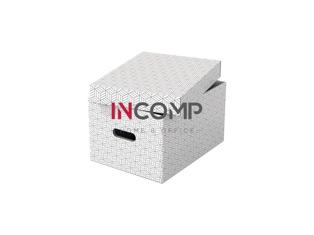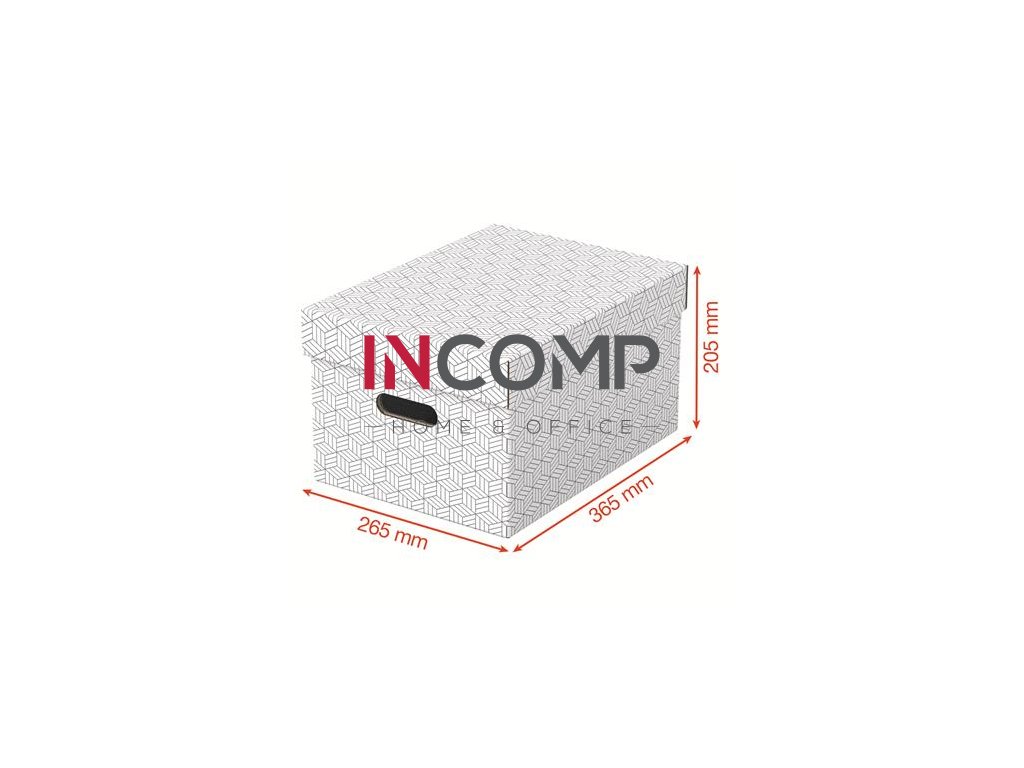 Súprava troch stredných lepenkových úložných boxov s moderným a štýlovým geometrickým dizajnom.