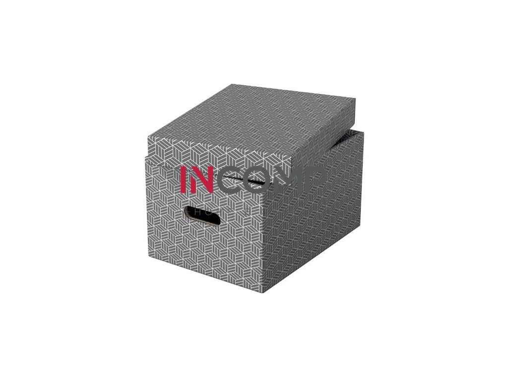 Súprava troch stredných lepenkových úložných boxov s moderným a štýlovým geometrickým dizajnom.