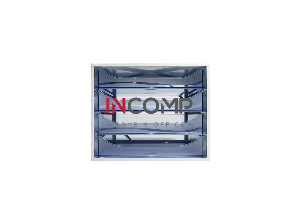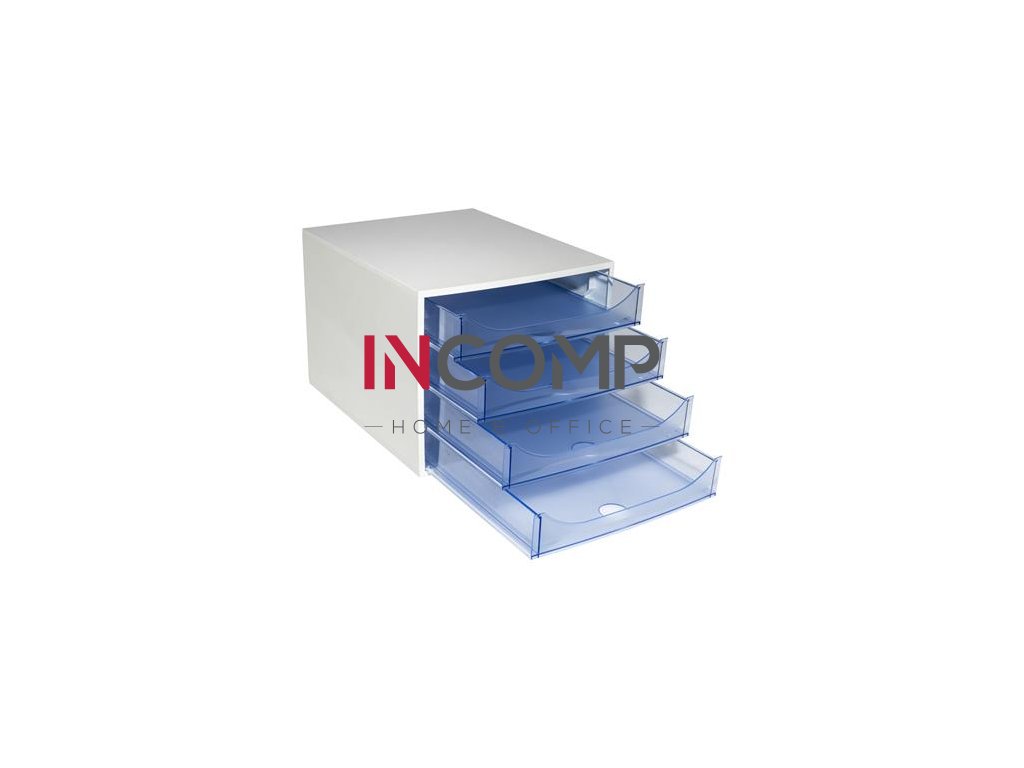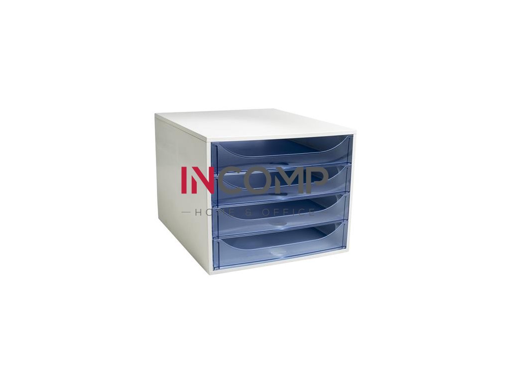 Úložný box na dokumenty, plastový, 4-zásuvkový, EXACOMPTA "Ecobox Linicolor", ľadovo modrý