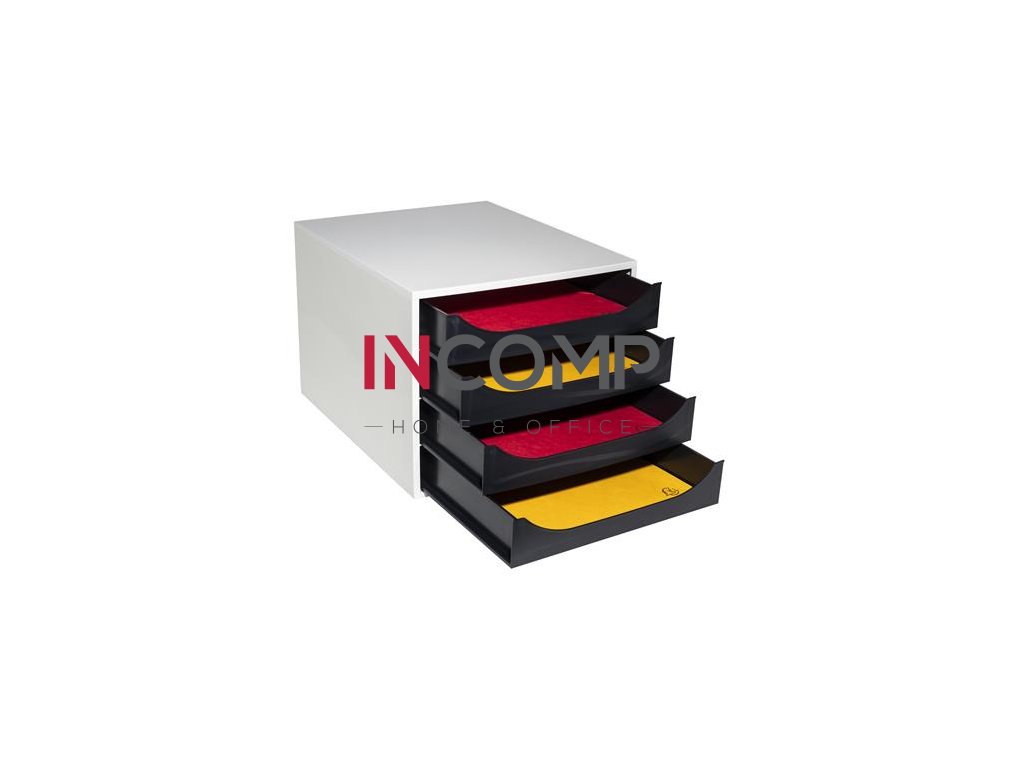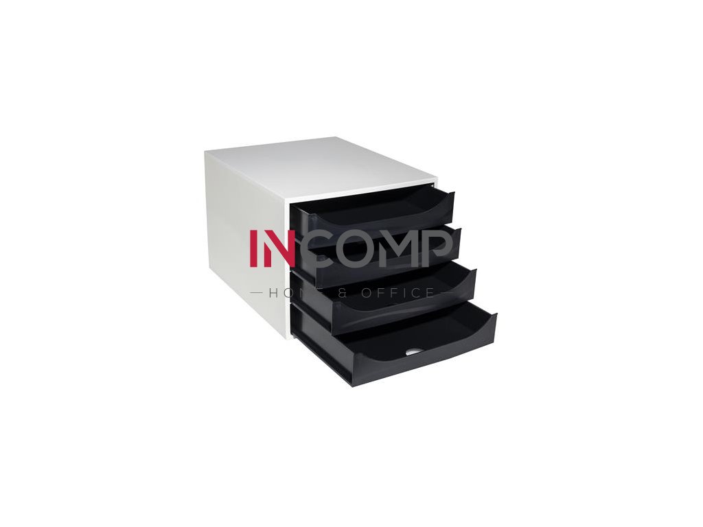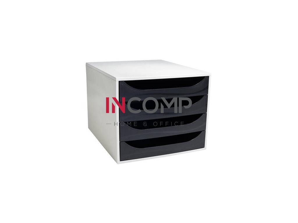 Úložný box na dokumenty, plastový, 4-zásuvkový, EXACOMPTA "Ecobox Office", sivá-čierna