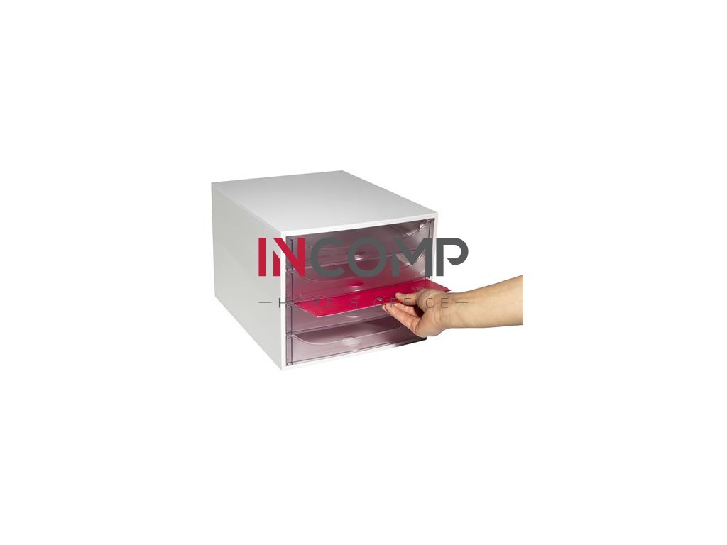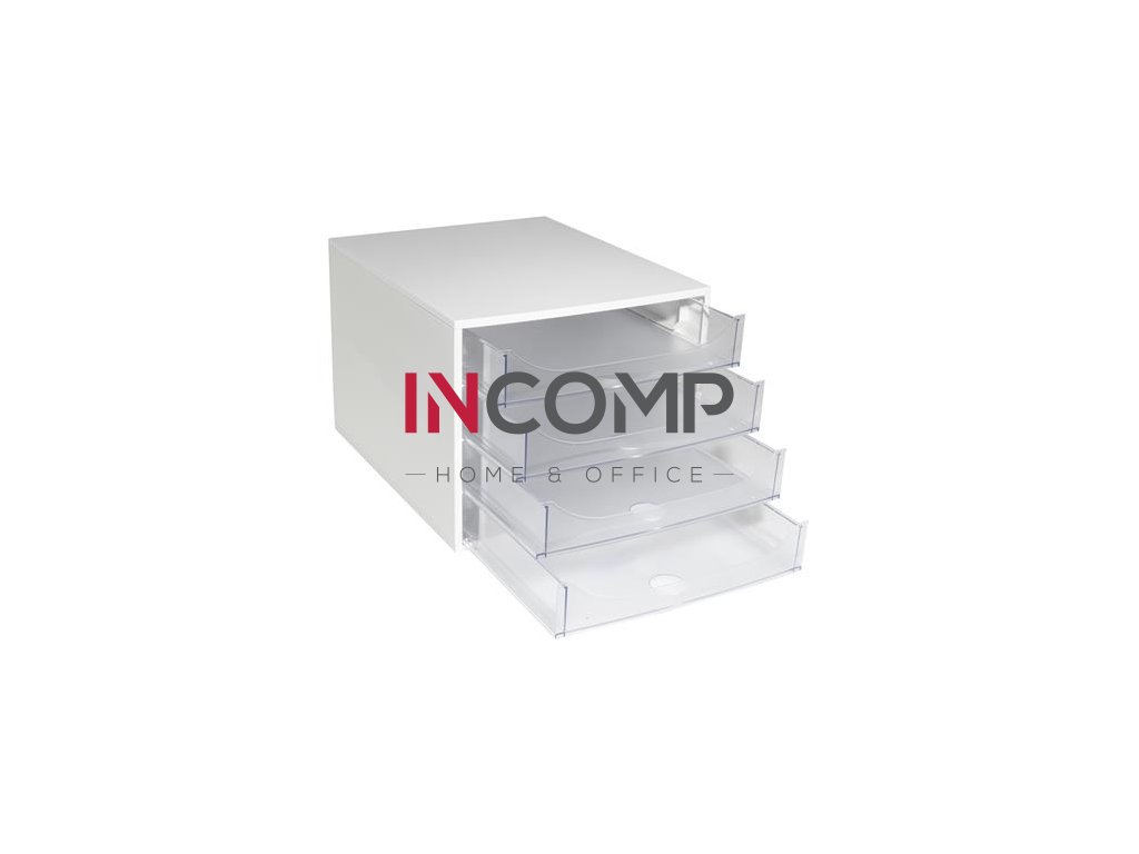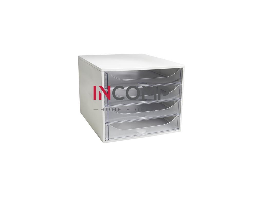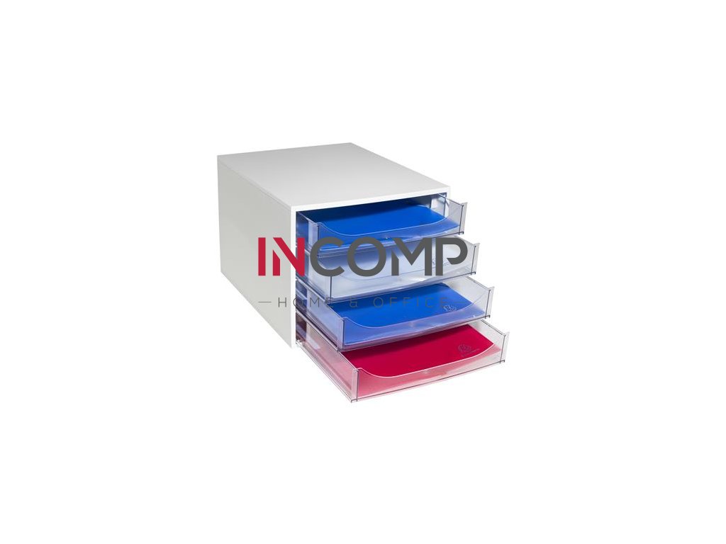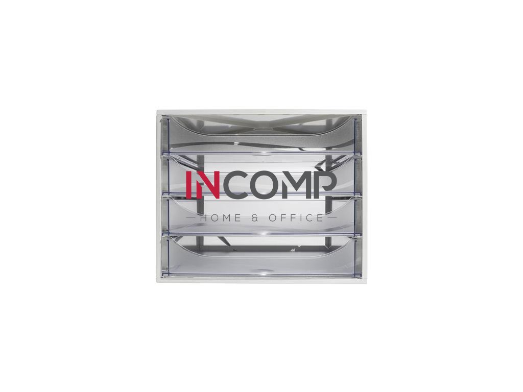 Úložný box na dokumenty, plastový, 4-zásuvkový, EXACOMPTA "Ecobox Office", sivý-priehľadný