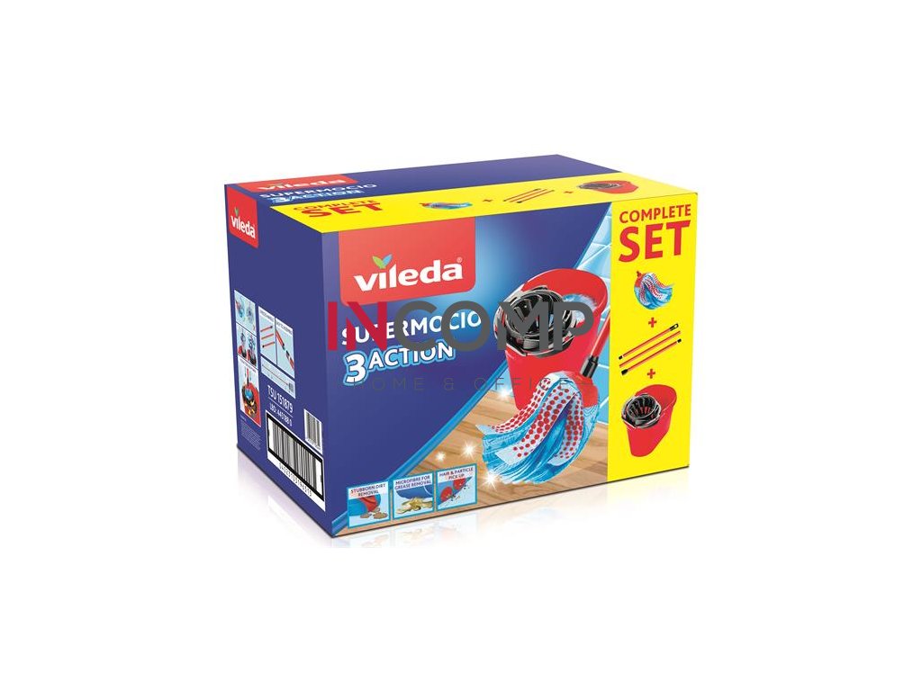 Sada obsahuje: 1 teleskopickú rukoväť + 1 3Action čistiacu hlavu + 1 vedro Supermop so žmýkačom