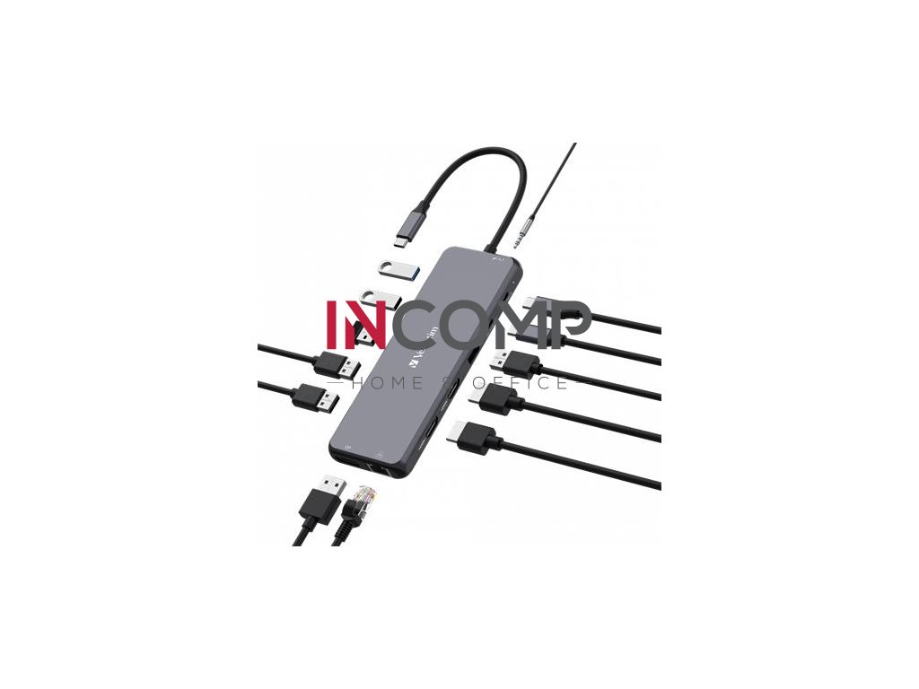 Transformujte jeden port USB-C ® na trinásť portov vrátane duálneho HDMI, vysokorýchlostných portov PD a gigabitového Ethernetu. -HDMI: 2 ks -DP: 1 ks -RJ45: 1 ks -USB-A 3.2 Gen 1: 3 ks -USB-A 3.2 Gen 2: 1 ks -USB-A 2.0: 2 ks -audio, zapnutie a vypnutie: 1 ks - USB-C PD: 2 ks - rýchlosť prenosu dát: až 10 Gbps - frekvencia HMDI: až 8K/30Hz - hmotnosť: 150 gramov - rozmery: 16 x 5,54 x 1,5 cm (dĺžka x šírka x výška) - dĺžka kábla: 20 cm - rozsah napätia: 5V-20V - max. prúd: USB výstup 5V/0,9A - napájanie: až 85 W (15 W je vyhradených pre ostatné porty)