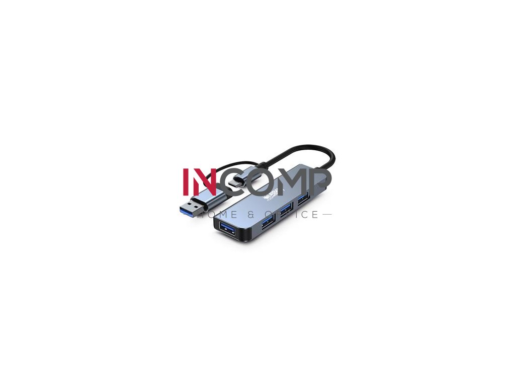 Rozbočovač USB-A/C so 4 portami USB-A 3.0. Kompatibilné s notebookmi, tabletmi a smartfónmi s portom USB-A alebo USB-C. 4 porty USB-A sú typu 3.0 s prenosovou rýchlosťou 5 Gbps. Počítačovú zásuvku je možné premeniť na USB-A alebo USB-C. Má povrchovú úpravu Space Grey Aluminium. -pripojenie: USB-A/C -LED indikátor prevádzky -rozmery: 27x90x10 mm -typ konektorov -1*USB-A/C (nahor) -4*USB 3.0 (5Gbps) -dĺžka kábla: 150 mm